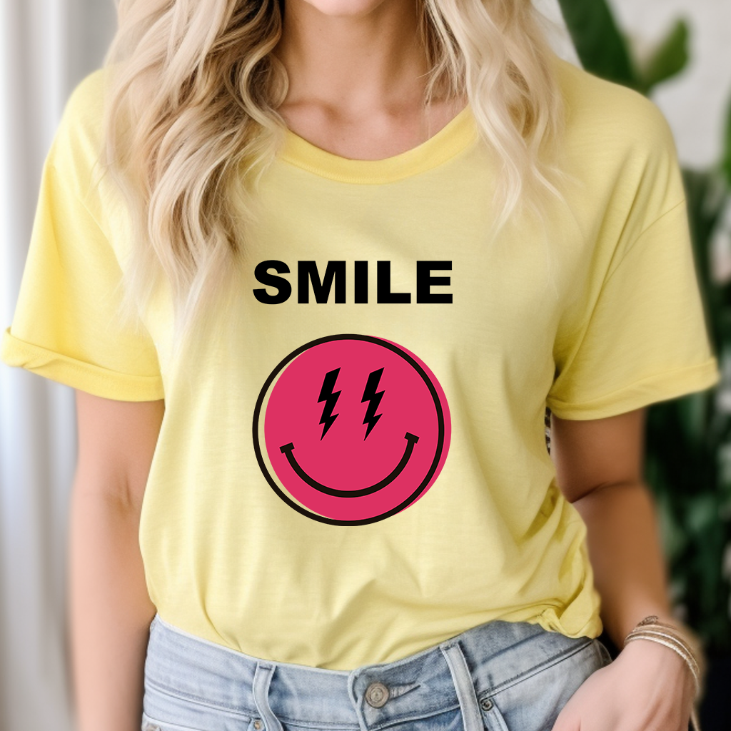 This eye-catching Lightning Happy Face T-Shirt is made from premium quality cotton for a lightweight, breathable feel. It features a unique pink and yellow lightning bolt happy face design that will stand out wherever you go. Get ready to break the mold and show off your style!